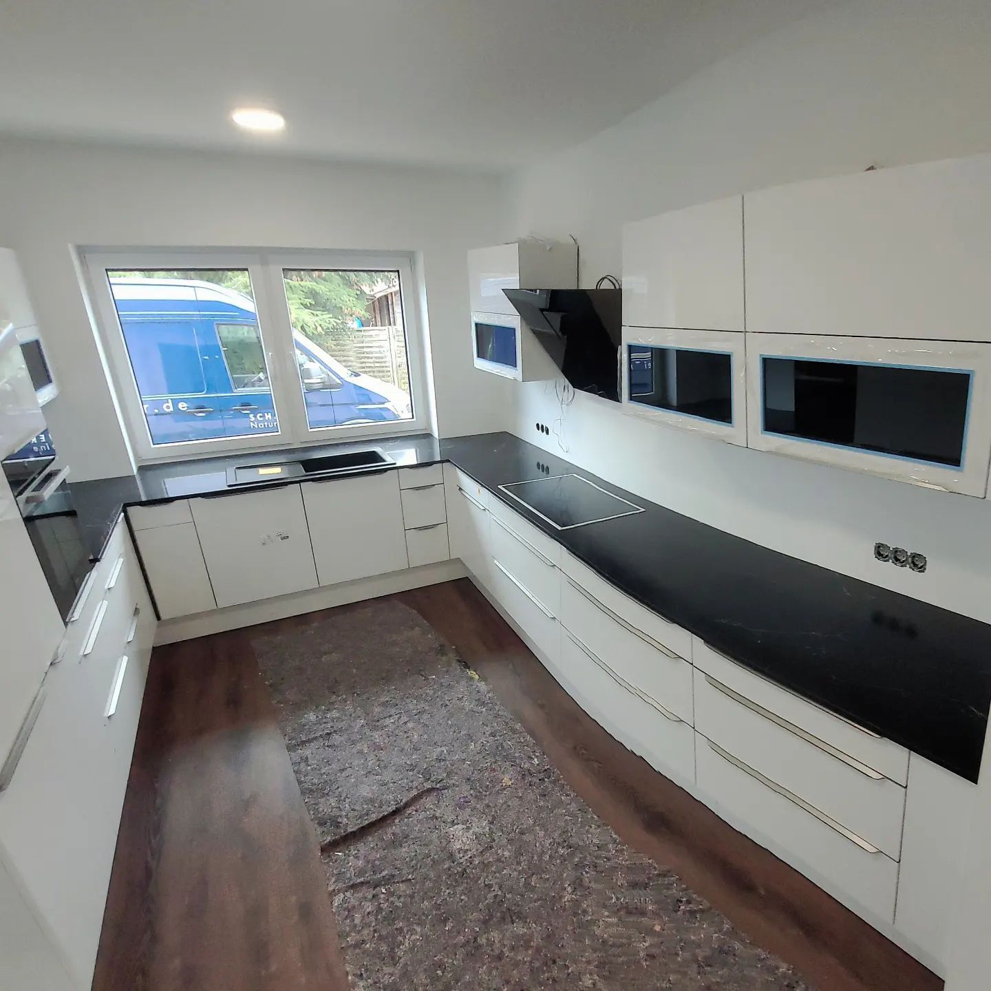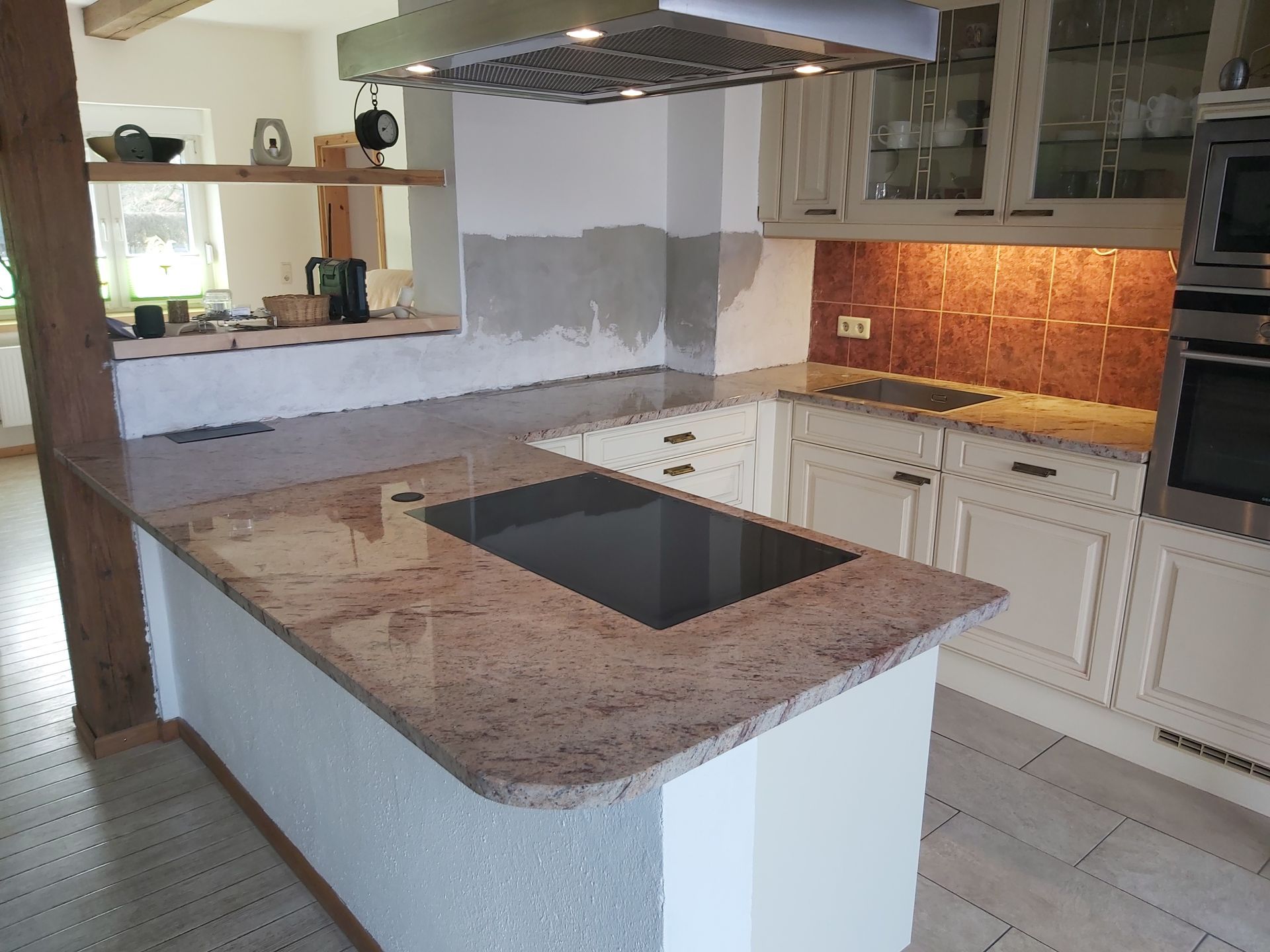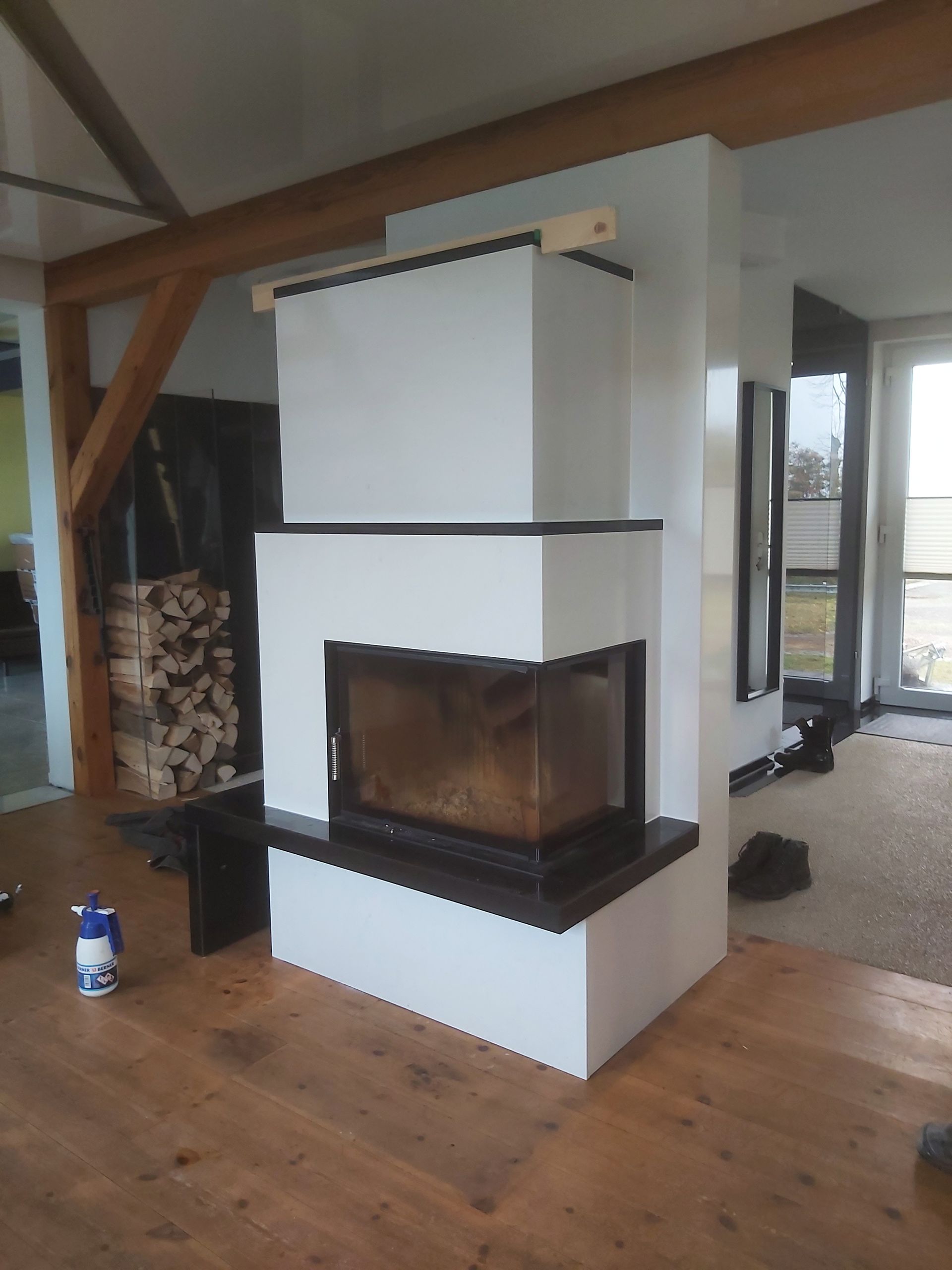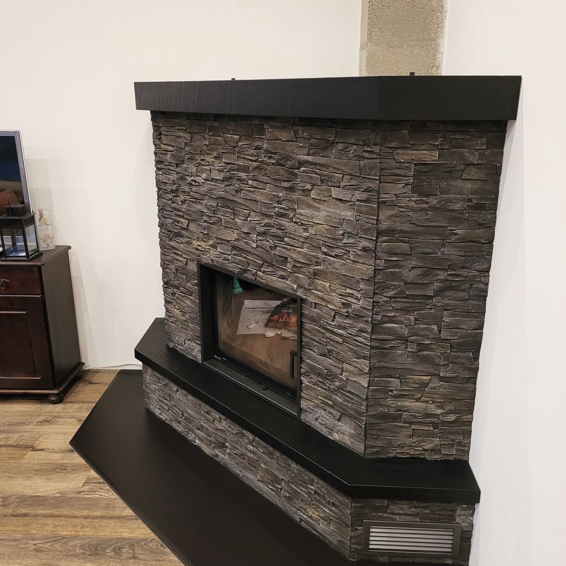 kompletter Kaminumbau aus Quartz vom Compac und aus Granit in Nero Assoluto.