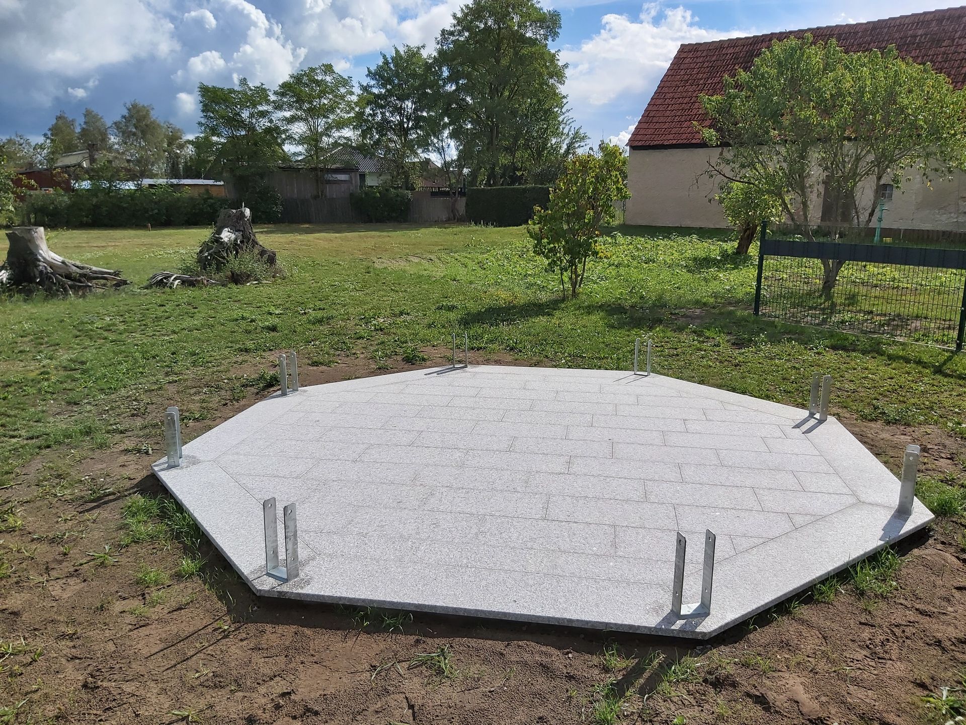 Unterbau für Gartenpavillion aus Granit in Rosa Beta.