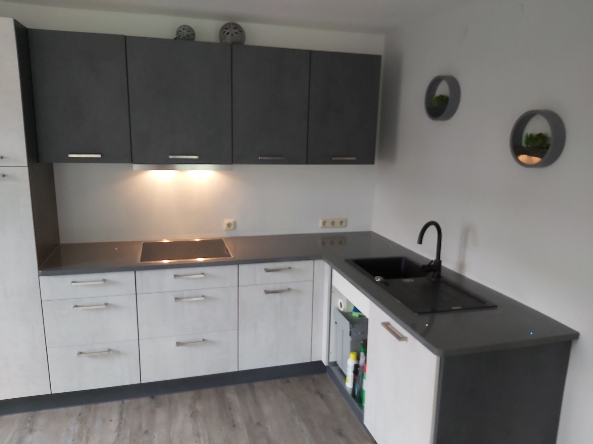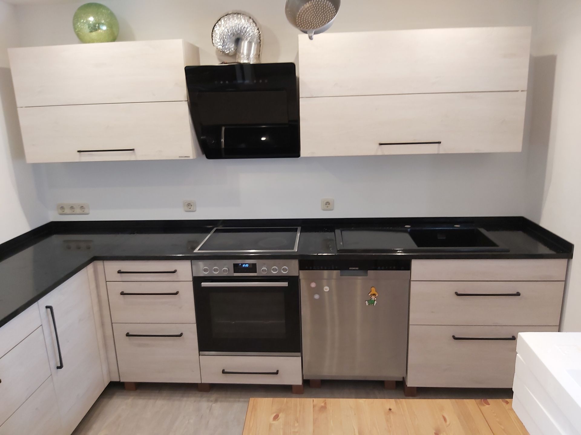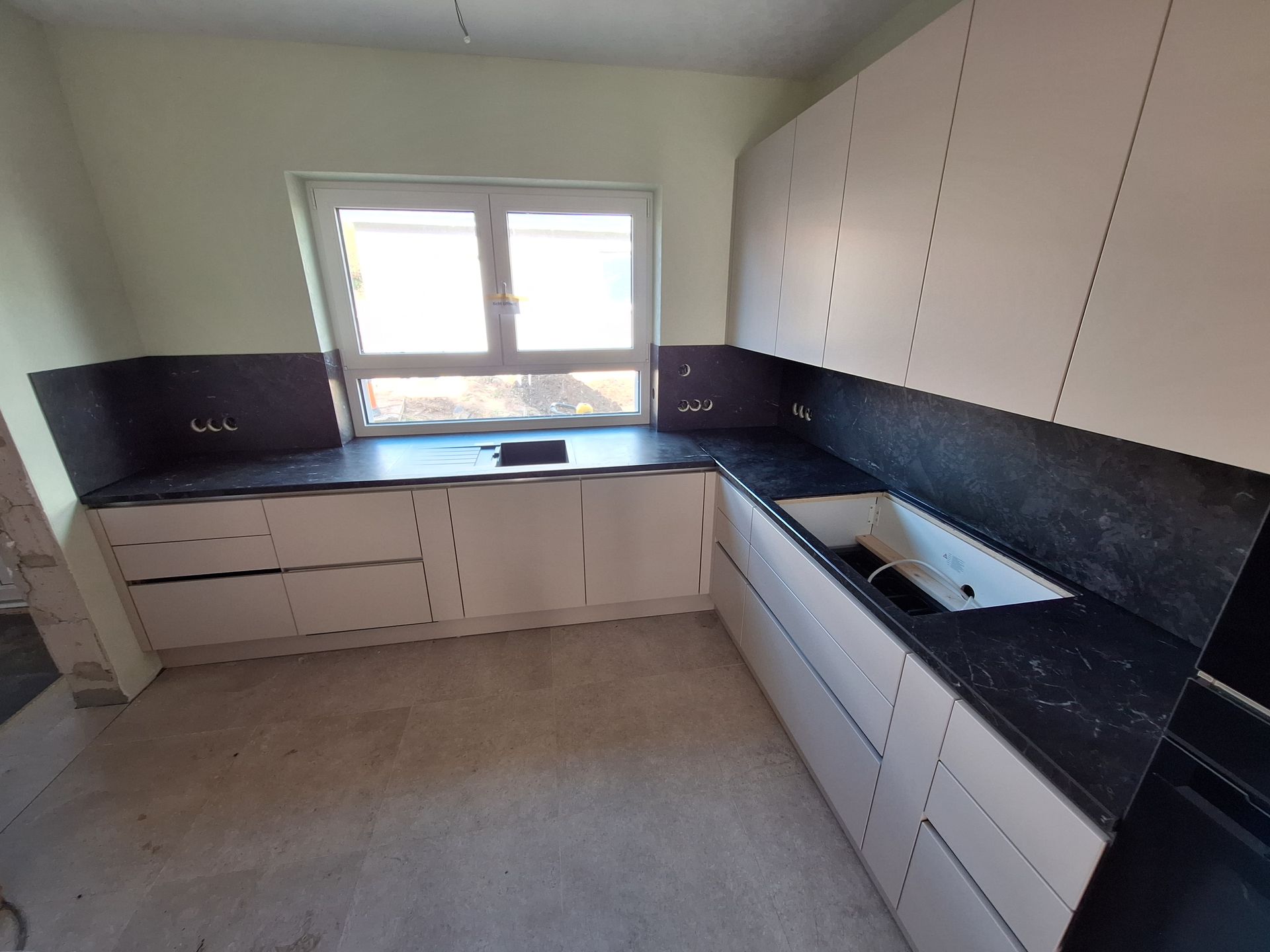 Arbeitsplatte aus Granit in Nero Assoluto in satinierter Oberfläche mit Unterbauspüle.