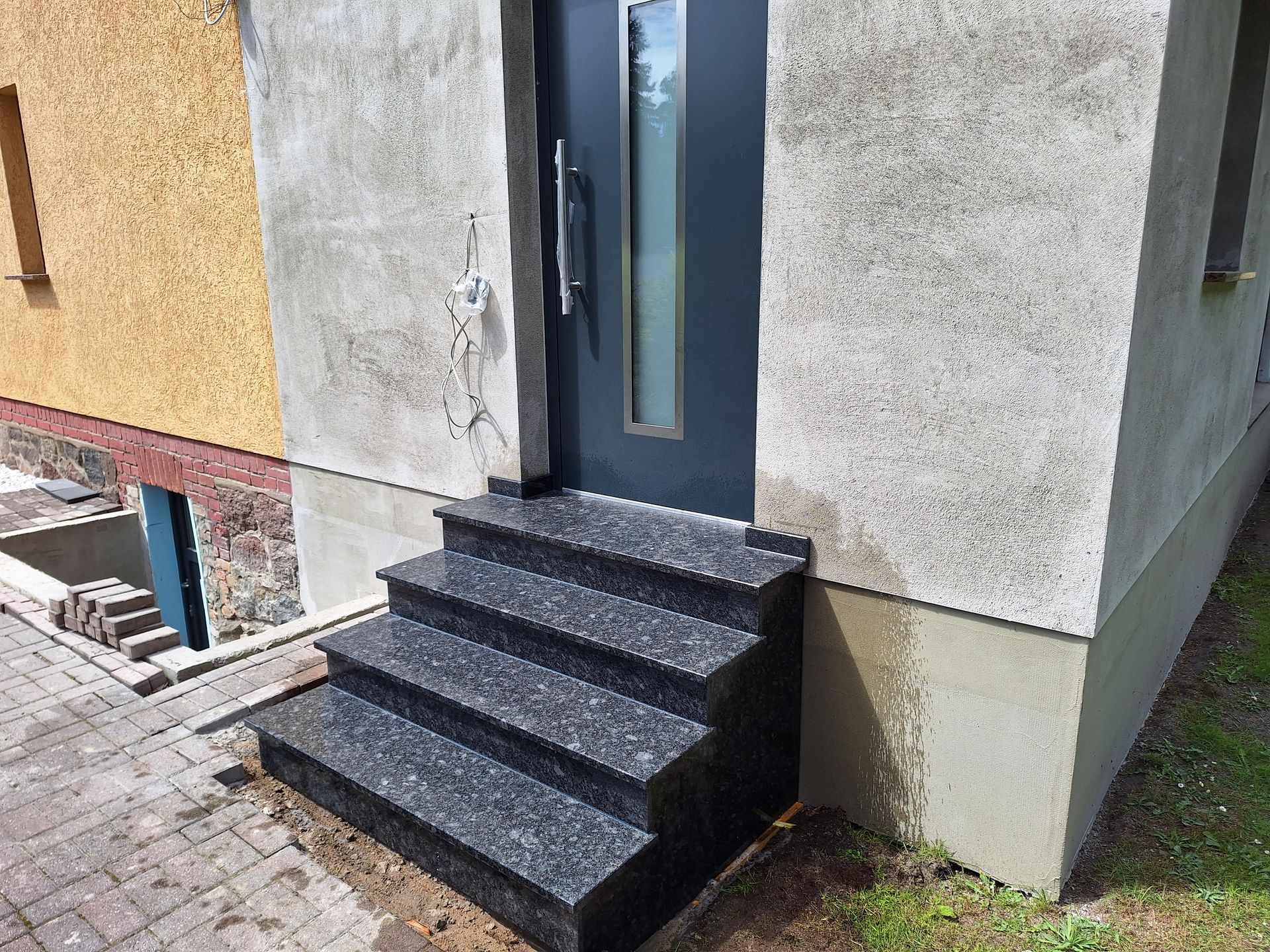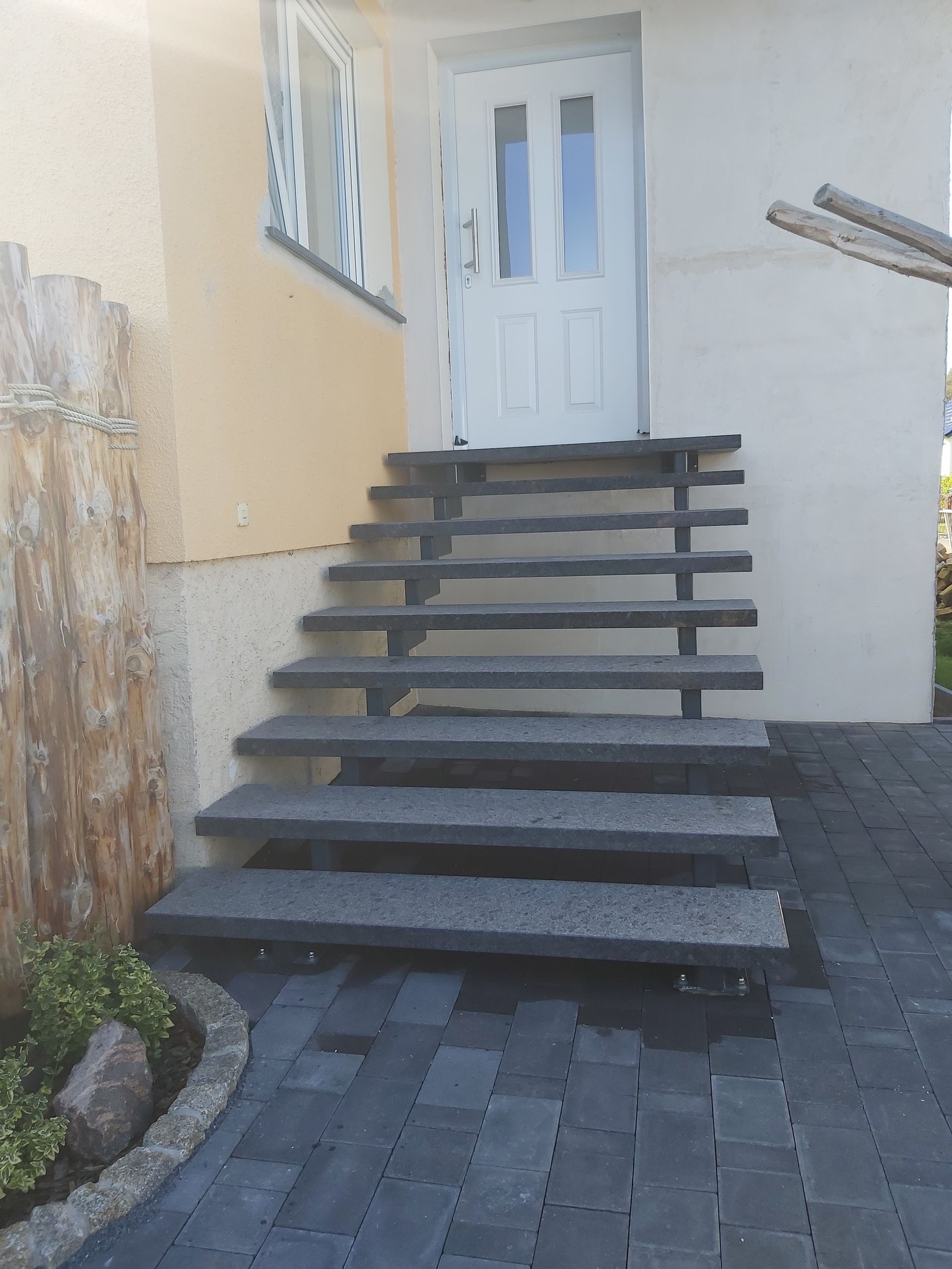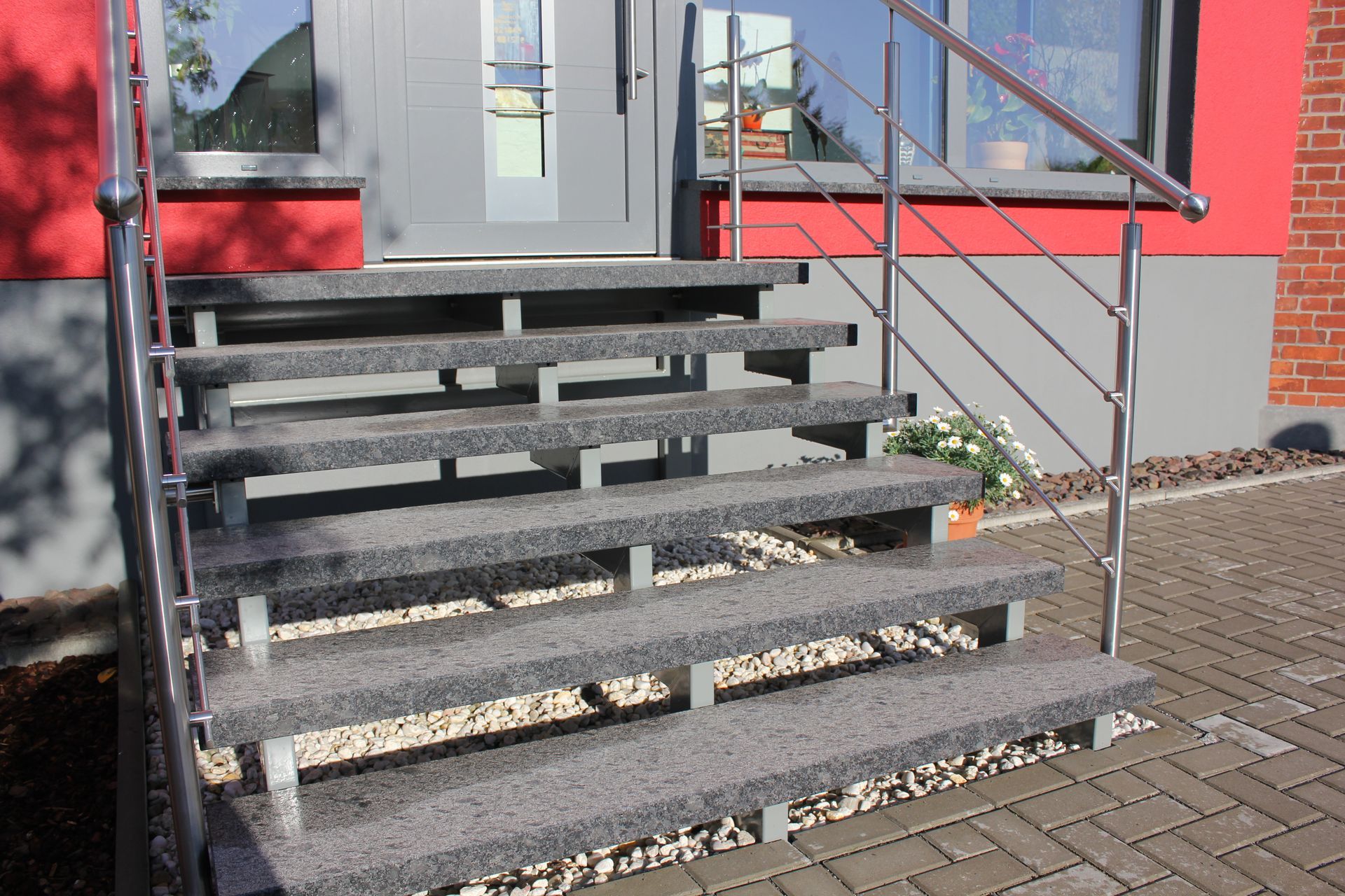 Eingangstreppe aus Granit in Steel grey.