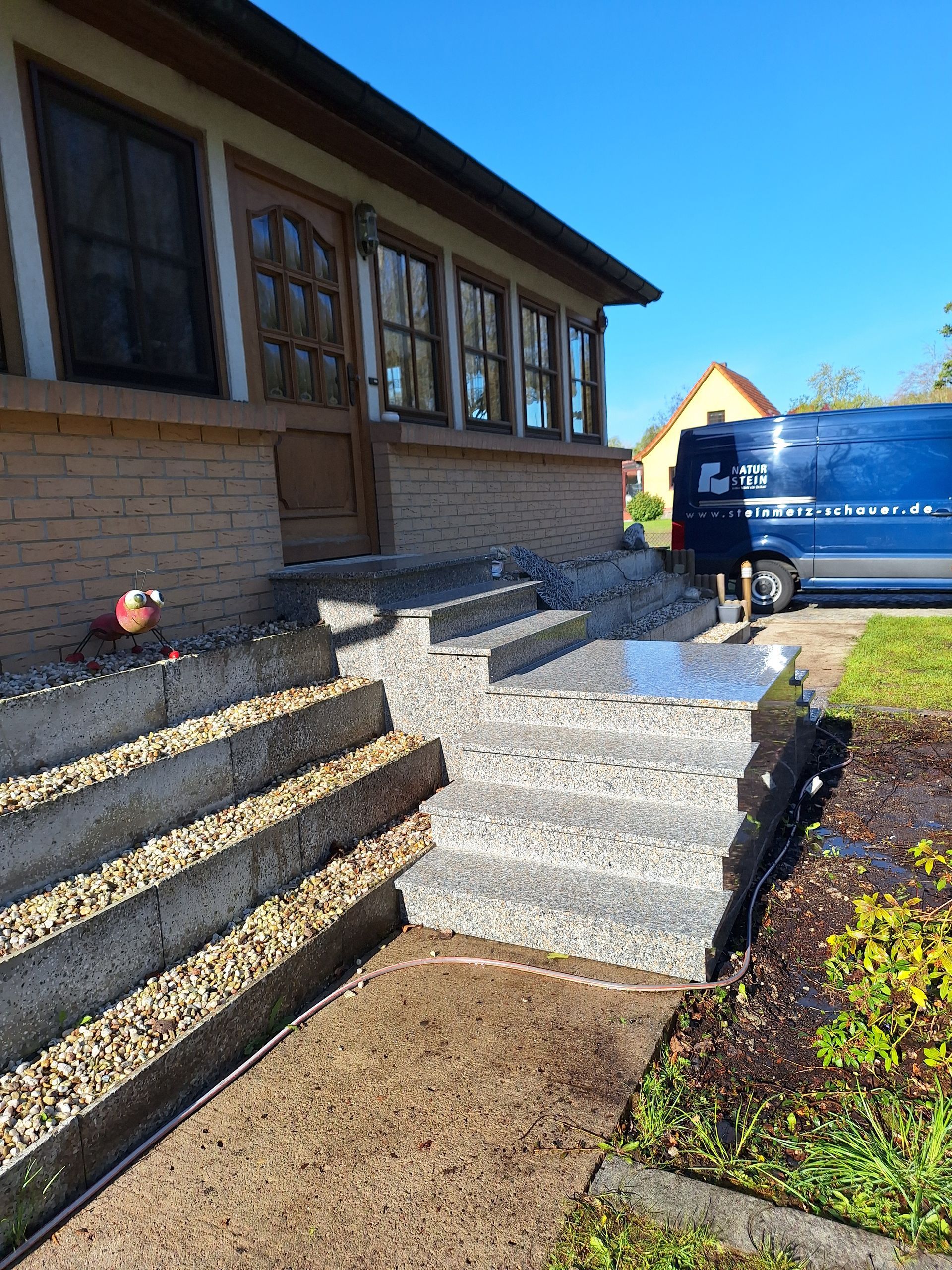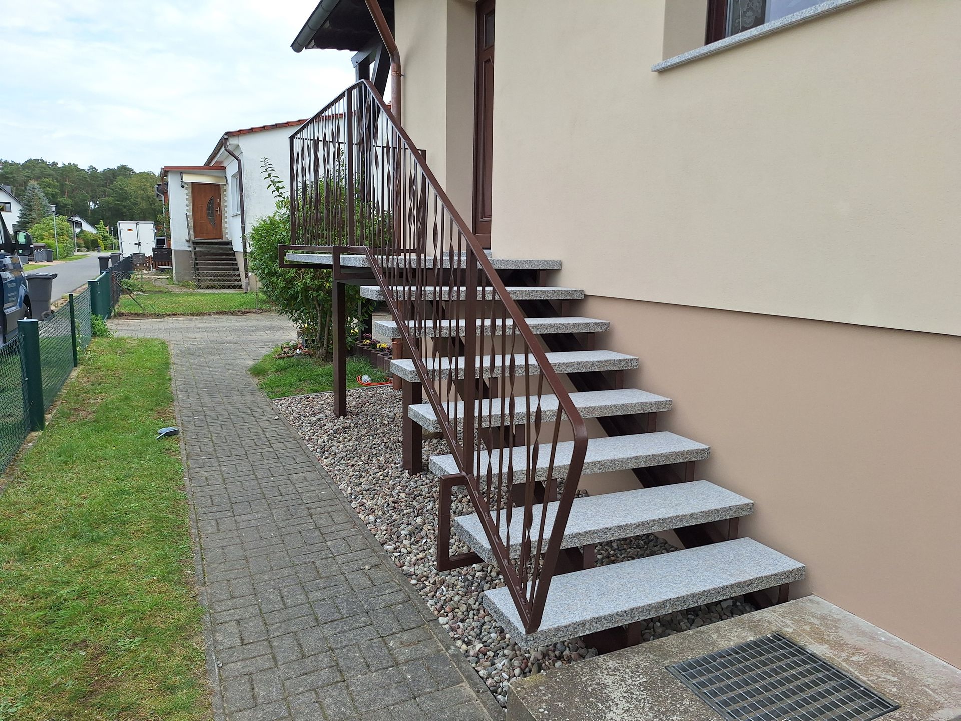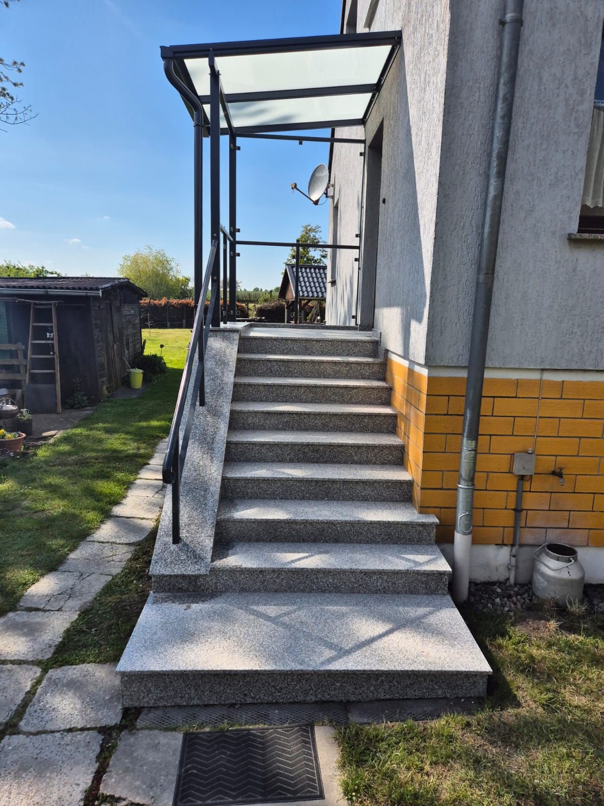 Eingangstreppe aus Granit in Steel grey.
