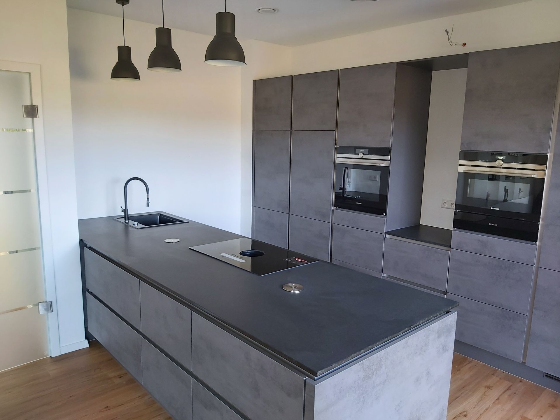 Küchenarbeitsplatte aus Granit in Nero Assoluto in satinerter Oberfläche.
