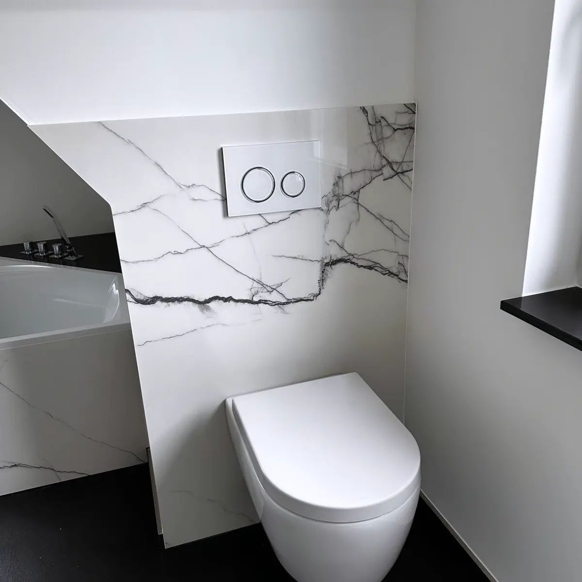 Wandgestaltung im Bad mit Quartzplatten von COMPAC.
