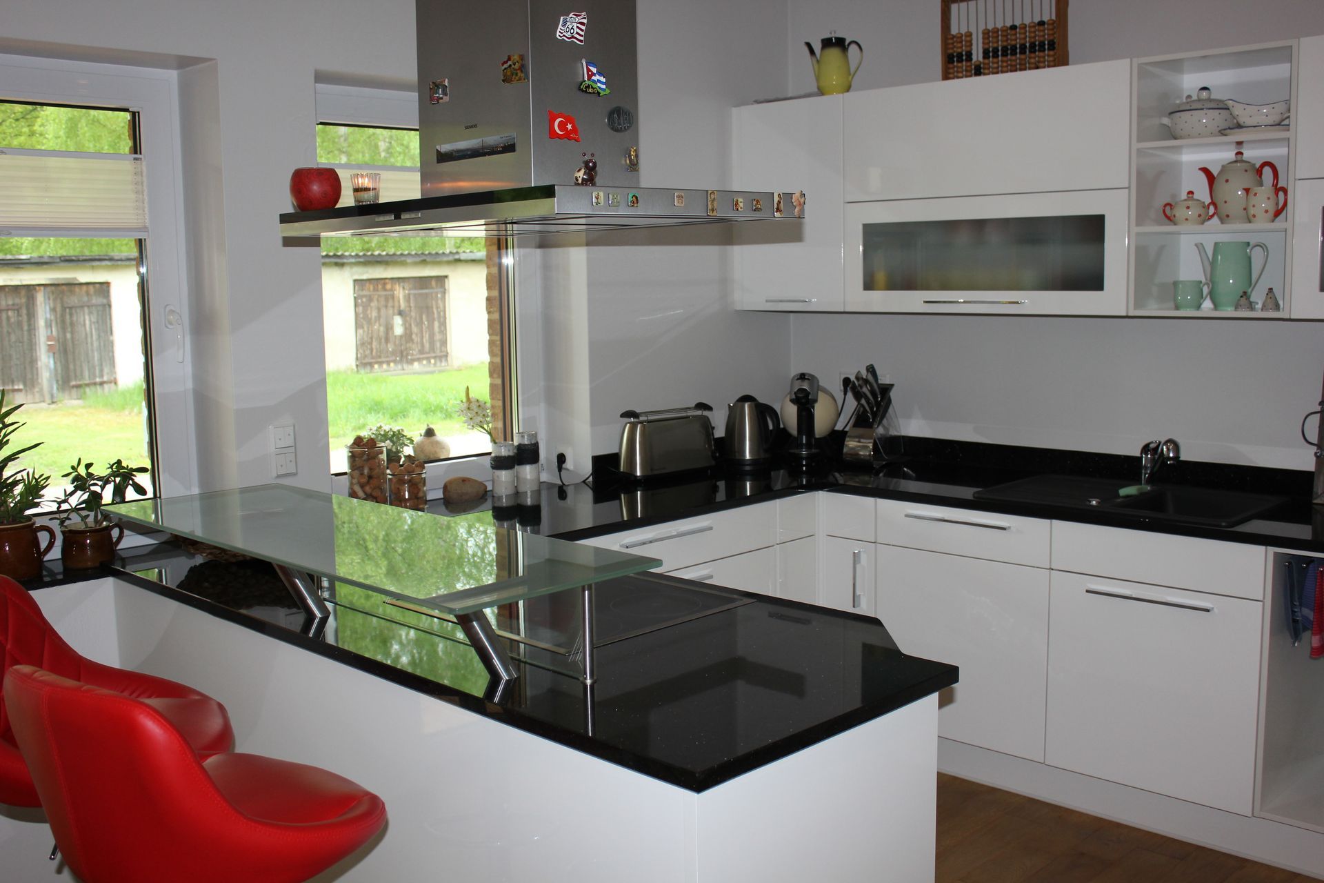 Küchenarbeitsplatte aus Quartz von Silestone mit passendem Fliesenspiegel.